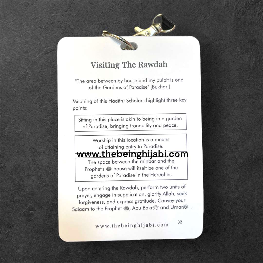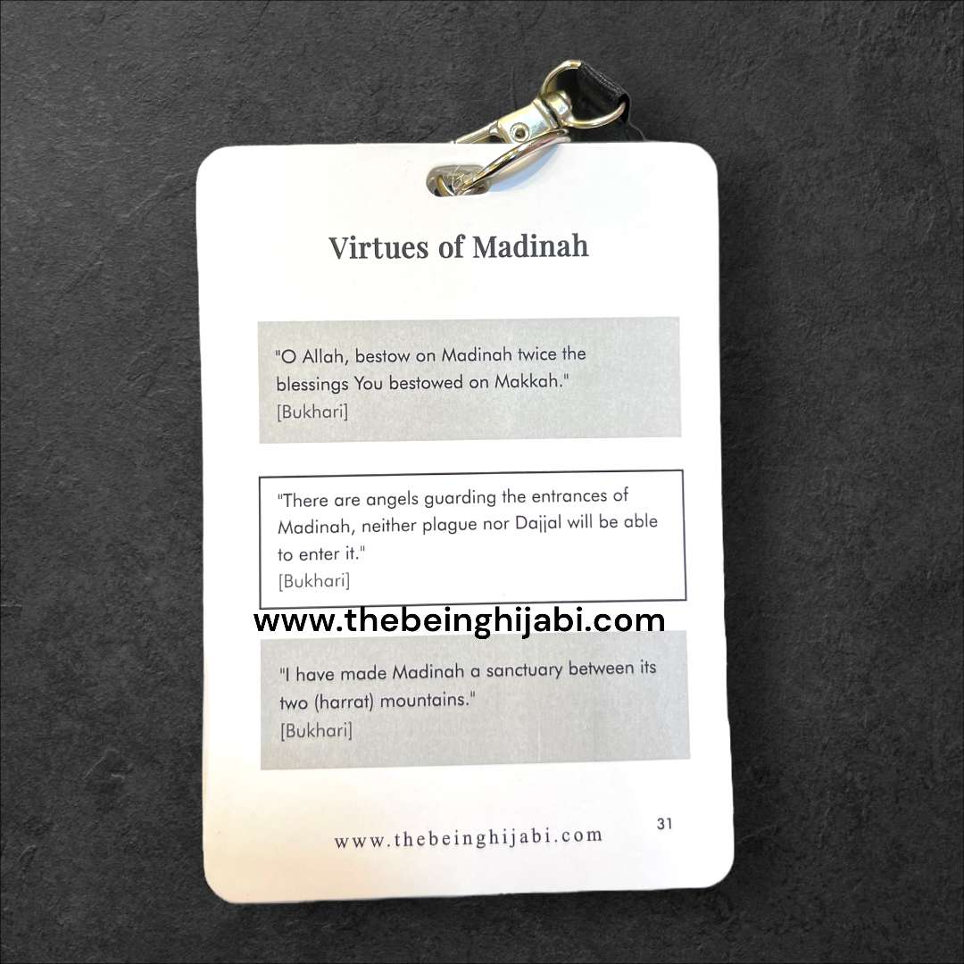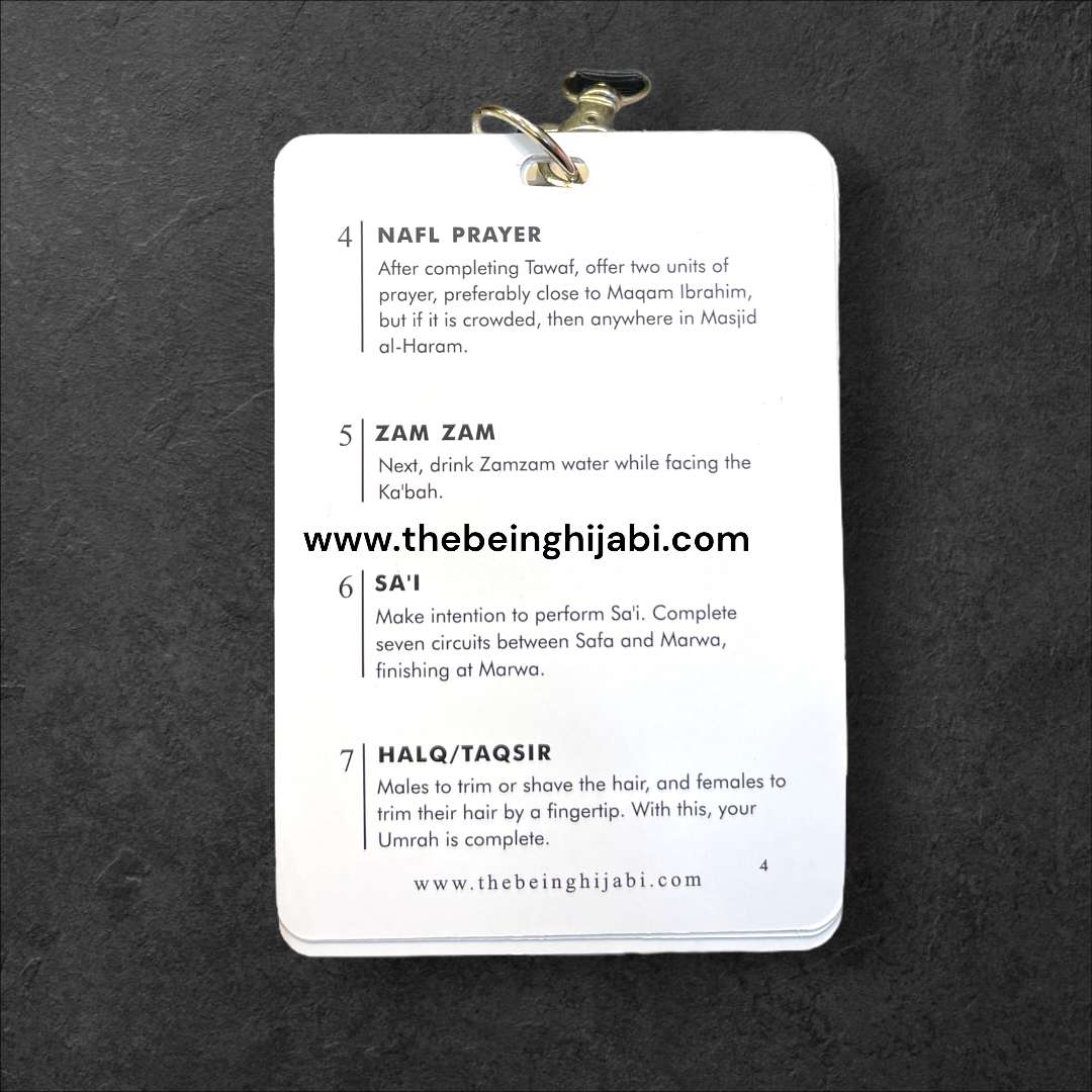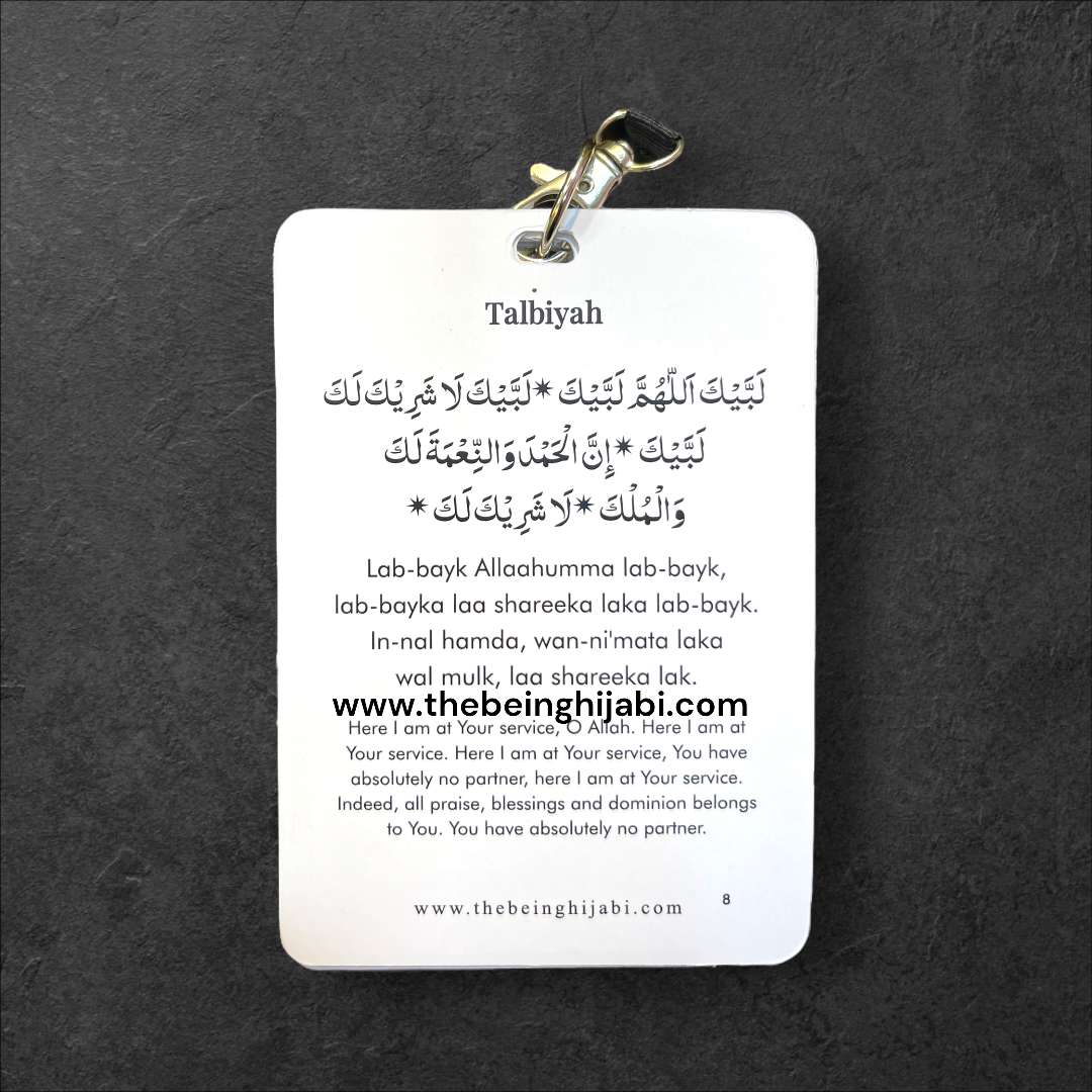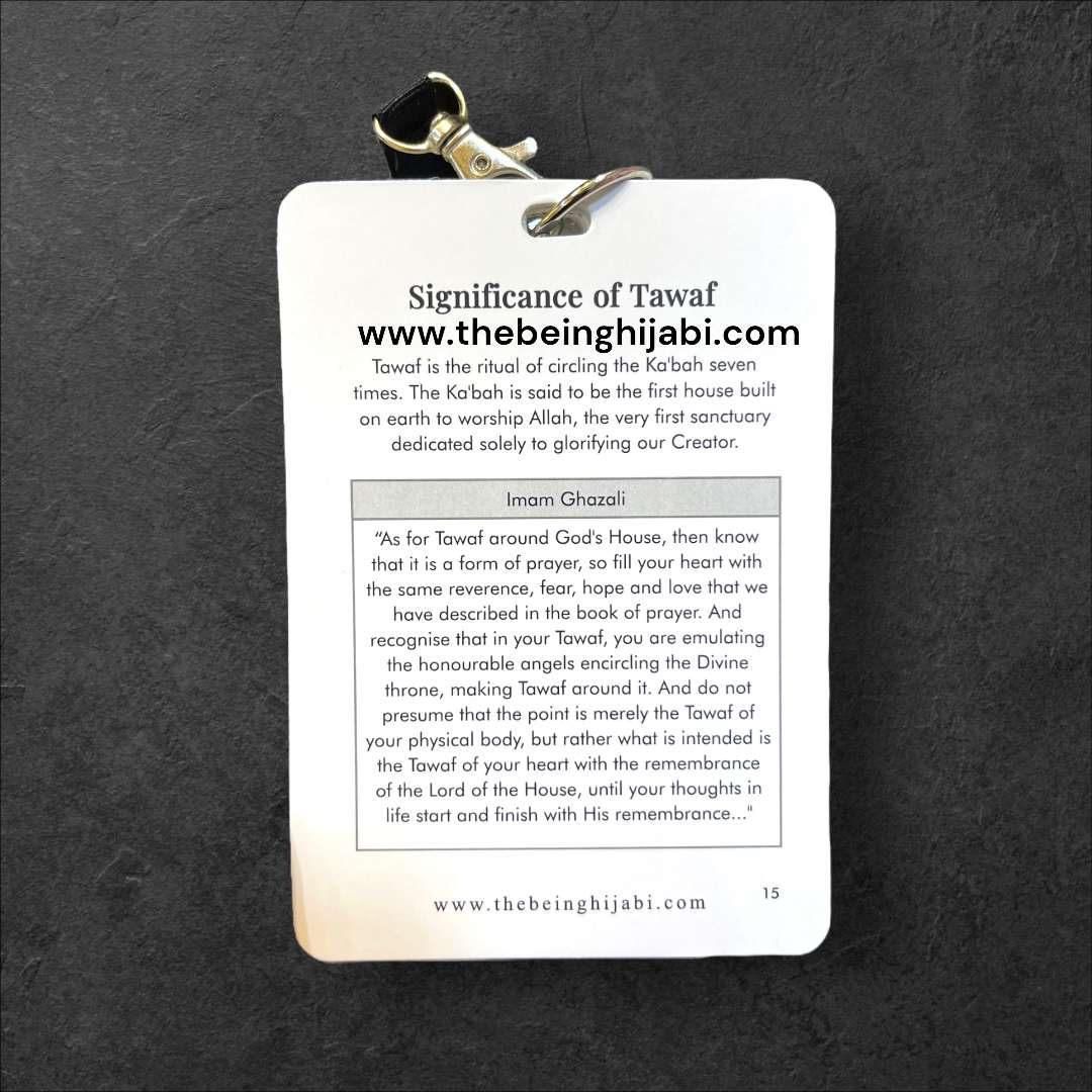 These cards feature an Umrah overview and 24 essential Duas making it your perfect companion for Umrah. Conveniently wear them as a lanyard, ensuring every moment is accompanied by the power of prayer. Streamline your Umrah with this portable and purposeful accessory. The Umrah Dua Cards Lanyard is the perfect portable planner and guide to help you with your Umrah.